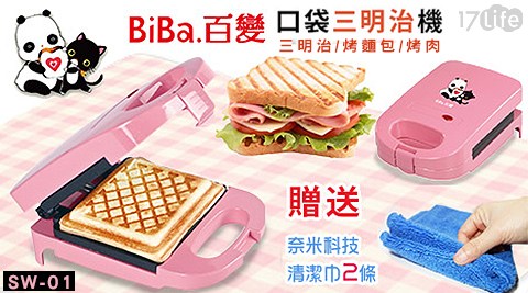 BiBa百變-口袋三明治機/烤麵包機/烤肉機1台+贈奈米清潔巾2條"
