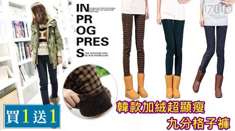韓款加絨超顯瘦九分格子褲,享買一送一優惠